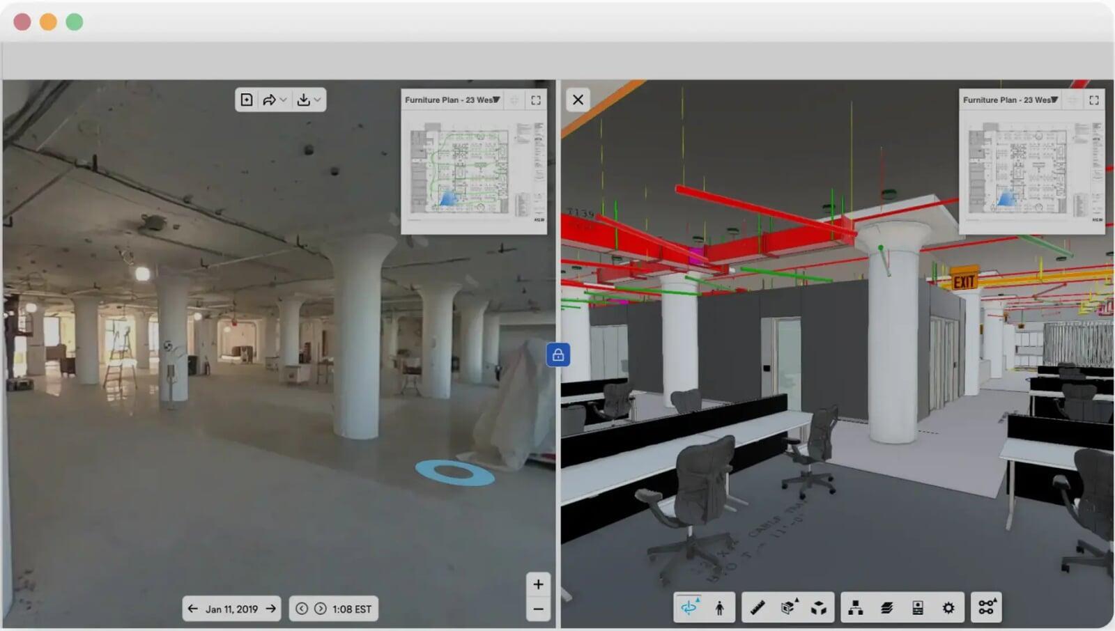 Overlay coordinated BIM models onto real site conditions to visually verify installation, assess design conformance, and support trade coordination. This provides a shared, reality-referenced environment for VDC and field teams to validate work-in-place and accelerate issue resolution.